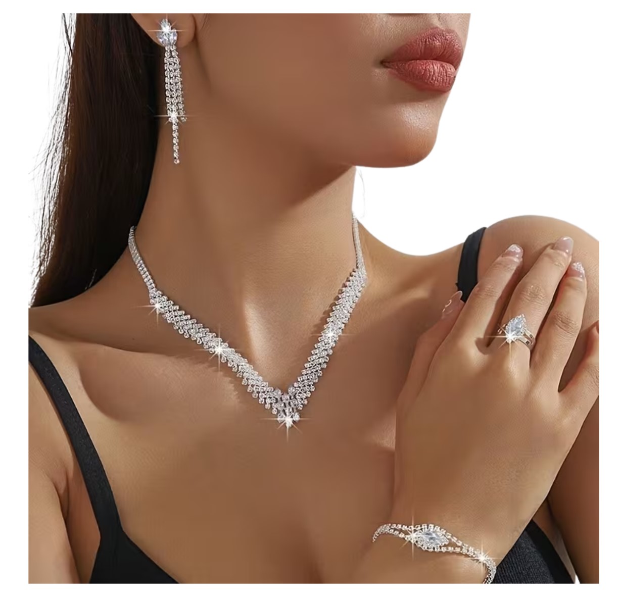 Juego De Joyas Set De Collar, Pulsera Brazalete Y Aretes estilo diamante