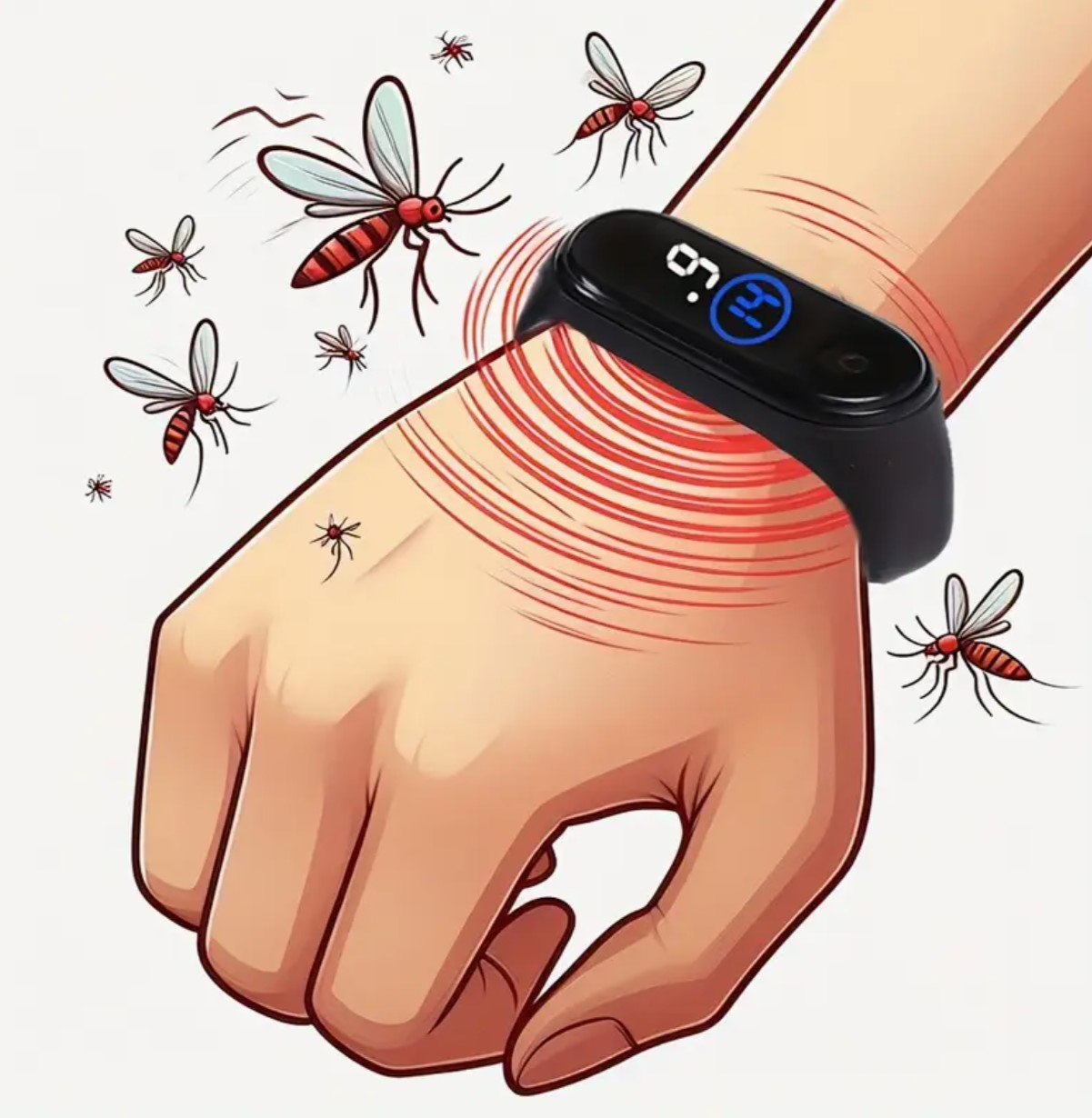 Mantente protegido de los molestos mosquitos con esta moderna pulsera electrónica repelente ultrasónica, ideal para usar al aire libre o en interiores. Funciona mediante ondas ultrasónicas que interfieren con el sistema nervioso de los insectos, alejándolos sin necesidad de químicos, fragancias o sprays.